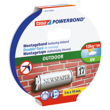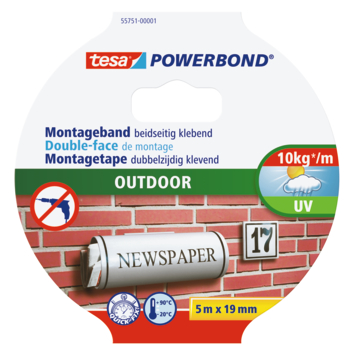 De Tesa Powerbond Outdoor montagetape groen 5 m x 19 mm is speciaal bedoeld voor buitengebruik op zowel effen als ruwe ondergronden. Dankzij de uv-bestendigheid blijft de tape stevig zitten bij zonlicht of wisselende weersomstandigheden. Je kiest deze tape als je buiten iets wilt vastzetten zonder gereedschap.