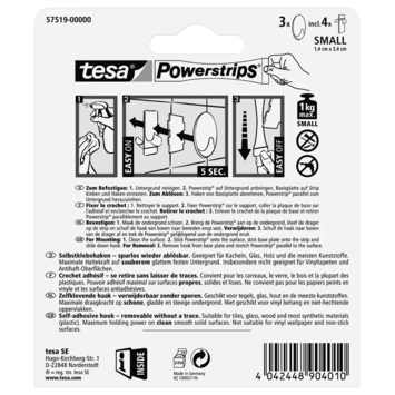 De Tesa Powerstrips haak ovaal mat chroom 3 stuks zijn 3 ovale plakhaakjes van Tesa voor gebruik in huis. Ze zijn te bevestigen zonder boren en schroeven, dankzij de dubbelzijdige kleefstrips. De haakjes zitten per twee in de verpakking, samen met twee extra kleefstrips. De haakjes zijn gemaakt van hoge kwaliteit kunststof. Eén haakje kan maximaal 1 kilo dragen, je kunt daardoor makkelijk kleine objecten aan de haakjes hangen. De haakjes zijn erg gemakkelijk van het oppervlak af te halen, zonder sporen achter te laten.