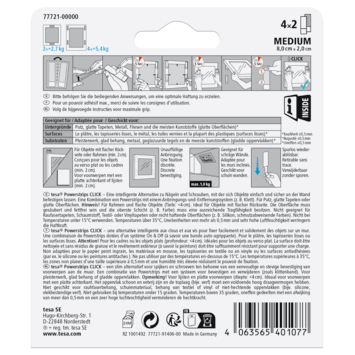 De Tesa Powerstrips CLICK bieden een praktische oplossing voor het ophangen van foto’s en vlakke wanddecoraties zonder te boren. Ze vormen een handig alternatief voor spijkers en zorgen ervoor dat decoraties stevig blijven hangen. Bij het bevestigen hoor je een duidelijk klikgeluid, zodat je weet dat het decorstuk goed vastzit. De Powerstrips worden volledig bedekt door de decoratie, waardoor de montage nauwelijks zichtbaar is. Daarnaast kunnen de strips eenvoudig worden verwijderd zonder lijmresten achter te laten en opnieuw worden gebruikt om decoraties een andere plek te geven. Zo kun je snel en netjes decoreren, zowel thuis als op kantoor.