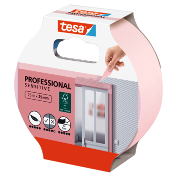 De Tesa Professional Sensitive schilderstape roze 38 mm x 25 m is een afplaktape voor gladde en lichte oneffen ondergronden binnen die geschikt is voor gevoelige oppervlakken. De afplaktape heeft een papieren drager en is met de hand afscheurbaar. Je verwijdert de tape zonder lijmresten tot zeven dagen na het aanbrengen. Deze tape helpt je extra strakke lijnen te schilderen.