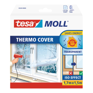 Tesa Thermo Cover 2.55 m² is een unieke niet-klevende isolatiefolie voor enkel glas en werkt als een isolerend luchtkussen dat de ontbrekende tweede laag glas kan vervangen. Tegelijkertijd vermindert deze raamisolatie vervelende condensatie van de ramen. Met de meegeleverde, dubbelzijdige tape, is bevestiging snel en eenvoudig. Met behulp van een gewone föhn kun je de folie glad aanbrengen.