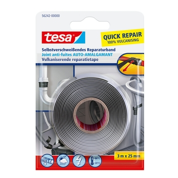 De Tesa zelfvulkaniserende tape 3mx25mm zwart is een tape voor tijdelijke, huishoudelijke reparaties. De tape is weer- en UV-bestendig en kan waterdicht afdichten en elektrisch isoleren. Daarnaast is de tape temperatuurbestendig van -20°C tot +80°C. Er zijn dus weinig situaties die deze tape niet aankan als het gaat om een noodreparatie. Geschikt voor toepassing op natte ondergrond. Pictogrammen op de achterzijde tonen gebruiksaanwijzing