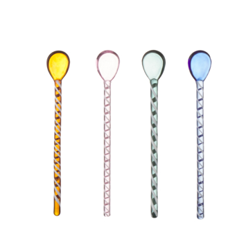 Theelepel glas set van 4 roze, bruin, groen en blauw