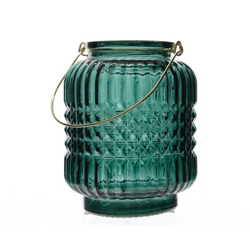 Theelichthouder glas groen met handvat Ø9x12 cm is een ronde, grafische theelichthouder. De donkergroene kleur voegt kleur toe aan elke kamer. De theelichthouder heeft een handvat en is daardoor eenvoudig te verplaatsen. Theelichthouder glas groen met handvat Ø9x12 cm heeft een diameter van 9 centimeter en is 12 centimeter hoog.