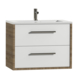 Tiger Badkamermeubel Boston 80 cm Chalet Eik met Polybeton Wastafel Wit en Ronde Grepen RVS