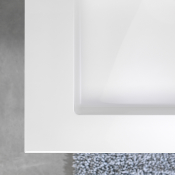 Daarnaast bestaat deze set uit een glanzend witte polybeton wastafel. Tijdens het ontwerpproces van de waskom is goed nagedacht over een juiste balans tussen design en functionaliteit. Polybeton wastafels zijn hygiënisch en gemakkelijk in onderhoud. De wastafel heeft een externe overloop en 1 kraangat. Voor het overloopgat wordt een sierring in zowel chroom als zwart meegeleverd waardoor deze altijd mooi aansluit bij je badkameraccessoires.