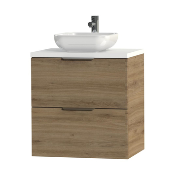 Tiger Badkamermeubel Studio 60 cm Chalet Eik met Keramische Waskom Hoogglans Wit en Profielgrepen