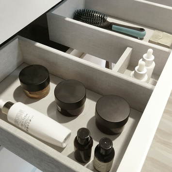 Haal het maximale uit je badkamer met deze wastafelonderkast in Scandinavische stijl. Het strakke design is simpel maar elegant. Deze slimme kast heeft een diepte van slechts 39 cm. Ideaal voor de kleinere badkamer. Dankzij haar effen lijnen laat hij de ruimte groter ogen. De ruime lades zijn uitgerust met Hettich softclosegeleiders en de binnenzijde heeft een trendy afwerking in textiel. De matwitte grepen zijn perfect in het geheel verwerkt. De luxueuse afwerking in hoogglans wit zorgt voor een frisse en ruimtelijke look.