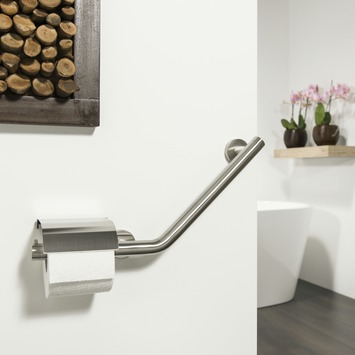 De Tiger Boston Comfort en Safety toiletrolhouder met steun rechts rvs van de accessoire serie Boston Comfort & Safety is uitgevoerd in geborsteld RVS, en is ook verkrijgbaar in glanzend RVS. Desgewenst is er een antislip grip voor deze greep los verkrijgbaar. Ook mogelijk met greep links. Dit artikel is TUV gecertificeerd. De Tiger accessoires zorgen voor een stijlvolle toevoeging aan je badkamer. Dit product kan uitsluitend worden bevestigd met de meegeleverde schroeven. Er zijn van deze serie diverse sanitair accessoires verkrijgbaar, voor meer comfort en veiligheid in de badkamer en toilet, geheel in de bekende Boston stijl.