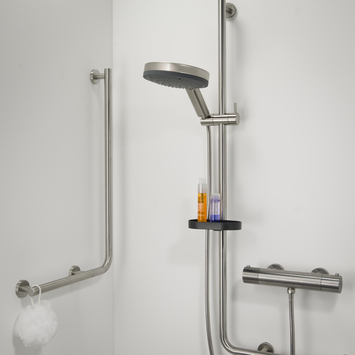 De Tiger Boston comfort & safety veiligheidsgreep 90° rechts van de accessoireserie Boston Comfort & Safety is uitgevoerd in geborsteld RVS, en is ook verkrijgbaar in glanzend RVS. Desgewenst is er een antislip grip voor deze greep los verkrijgbaar. Veiligheidsgrepen zijn er in 30 centimeter, 45 centimeter, 90 centimeter of met een hoek van 135 graden. Dit artikel is TUV gecertificeerd. Dit product kan uitsluitend worden bevestigd met de meegeleverde schroeven. Er zijn van deze serie diverse sanitair accessoires verkrijgbaar, voor meer comfort en veiligheid in de badkamer en toilet, geheel in de bekende Boston stijl.