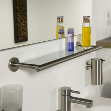 Het Tiger Boston planchet rvs van de accessoire serie Boston is uitgevoerd in geborsteld RVS gecombineerd met mat glas, en is ook verkrijgbaar in glanzend RVS. De Tiger accessoires zorgen voor een stijlvolle toevoeging aan je badkamer. Dit product kan aan de wand worden geschroefd, maar kan ook met behulp van Tigerfix 1 op een gladde en harde ondergrond geplakt worden. Je hoeft dus niet te boren. (Tigerfix is los verkrijgbaar). Er zijn van deze serie diverse sanitair accessoires verkrijgbaar. Dit product maakt deel uit van het Boston totaalconcept, dat verder bestaat uit kranen, badmeubelen, douche accessoires en douchecabines, alles in de Boston stijl.