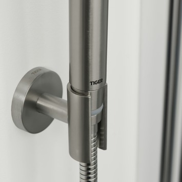 De Tiger Boston douchekophouder is uitgevoerd in geborsteld RVS en is onderdeel van het Boston totaalconcept.