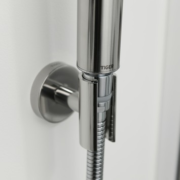 De Tiger Boston douchekophouder is uitgevoerd in glanzend RVS en is onderdeel van het Boston totaalconcept.