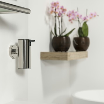 De Tiger Boston zeepdispenser chroom voor het toilet van de accessoire serie Boston is uitgevoerd in glanzend RVS, en is ook verkrijgbaar in geborsteld RVS. De zeepdispenser bevat een uitneembare kunststof binnenfles, dit vereenvoudigt het vullen en het schoonmaken. De Tiger accessoires zorgen voor een stijlvolle toevoeging aan je badkamer. Dit product kan aan de wand worden geschroefd, maar kan ook met behulp van Tigerfix 1 op een gladde en harde ondergrond geplakt worden. Je hoeft dus niet te boren. (Tigerfix is los verkrijgbaar). Er zijn van deze serie diverse sanitair accessoires verkrijgbaar, waaronder verschillende maten Boston zeepdispensers. Dit product maakt deel uit van het Boston totaalconcept, dat verder bestaat uit kranen, badmeubelen, douche accessoires en douchecabines, alles in de Boston stijl.