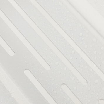Tiger Caddy douchemand heeft een vlakke bodem met hoge rand die ervoor zorgt dat de producten stevig in het rek blijven staan en de afwateringssleuven laten het water met gemak weglopen. De zachte afgewerkte hoeken zorgen ervoor dat je zonder gevaar voor eigen vingers het mandje schoon kan maken. De Tiger Caddy witte douchemand is 24cm.