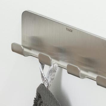 De multihaak uit de Colar serie van Tiger is uitgevoerd in geborsteld rvs. De haak is voorzien van een krachtige dubbelzijdige tape waardoor montage op iedere gladde, stevige ondergrond zeer eenvoudig is. De Colar serie bevat tevens een dubbele haak, maar ook een groot aantal aanvullende accessoires voor de badkamer en toiletruimte in dezelfde stijl.