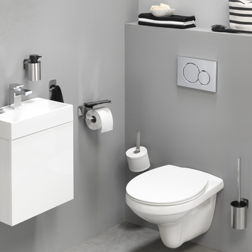 De reserverolhouder uit de Colar serie van Tiger is uitgevoerd in RVS/Inox. De reserverolhouder is voorzien van een krachtige dubbelzijdige tape waardoor montage op iedere gladde, stevige ondergrond zeer eenvoudig is. Met dit accessoire zijn extra rollen toiletpapier op fraaie wijze op te bergen nabij het toilet zodat er altijd voldoende toiletpapier beschikbaar is. De Colar serie bevat tevens een groot aantal aanvullende accessoires voor de badkamer en toiletruimte in dezelfde stijl. Alle artikelen uit de Colar serie zijn ook verkrijgbaar in rvs geborsteld.