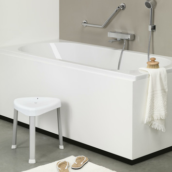 We zochten naar een mogelijkheid om te zitten onder de douche, maar wilden geen stoel model. Toen vonden we deze leuke kruk, die weinig plaats in neemt en toch stevig staat. Wat ons betreft een topkeuze!