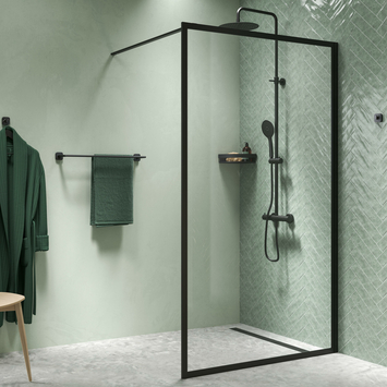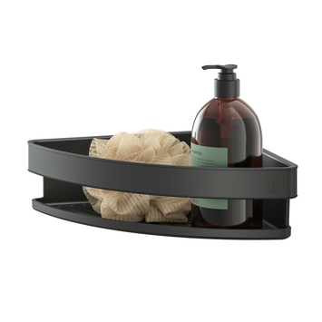 Deze hoekdouchemand van Tiger Carv kan je dankzij het schuifmechanisme eenvoudig van de muur halen. Zo houd je de tegels altijd goed schoon.