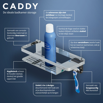 Tijdloos, uniek én multifunctioneel. Dat omschrijft het ontwerp van deze speelse douchemand mét haak van Tiger Caddy. Dit 2-in-1 design biedt naast je douchegel en shampoo ook ruimte voor je scheermes, handdoek of wisser. Zo kun je alles netjes opbergen en heb je altijd je spulletjes binnen handbereik. In de douche, bij de wastafel of in de toiletruimte. Met Caddy ga je niet alleen voor functioneel maar ook voor een luxe uitstraling.