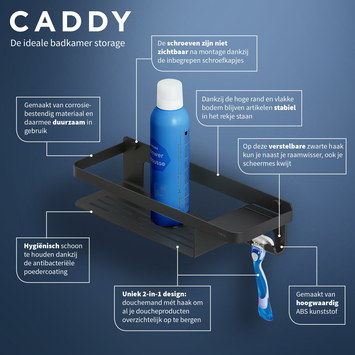 Tijdloos, uniek én multifunctioneel. Dat omschrijft het ontwerp van deze speelse douchemand mét haak van Tiger Caddy. Dit 2-in-1 design biedt naast je douchegel en shampoo ook ruimte voor je scheermes, handdoek of wisser. Zo kun je alles netjes opbergen en heb je altijd je spulletjes binnen handbereik. In de douche, bij de wastafel of in de toiletruimte. Met Caddy ga je niet alleen voor functioneel maar ook voor een elegante urban vibe in je badkamer.