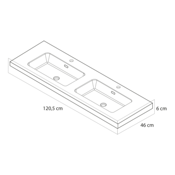 - Twee diepe waskommen met externe overloop