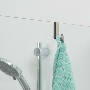 Het Tiger haak t.b.v. douchewand Rack Basic 6-8 mm inox gebruik je als handig ophanghaakje aan je douchewand of glazen douchedeur met een dikte van 6-8 mm. Als deze geen profiel hebben: het haakje is aan de binnenzijde voorzien van een zacht, beschermend materiaal, zodat het glaspaneel niet beschadigt. Aan het haakje hang je makkelijk een washandje, een handdoek of een ander item op. Je kunt de haak zowel binnen als buiten de douchecabine ophangen, want het is gemaakt van geborsteld inox. Het is dus goed bestand tegen vocht. Met afmetingen van 16 mm breed, 61 mm hoog en 37 mm diep past deze moderne douchecabinehaak in vrijwel iedere badkamer.
