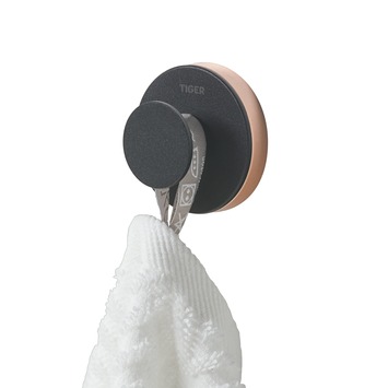 De Tiger Haak Urban Groot Zwart is uitgevoerd in de kleur mat zwart en wordt geleverd met twee decorringen. De decorringen, in de kleur koper en grijs, maken het mogelijk een subtiel kleuraccent toe te voegen. Het is ook mogelijk de haak zonder de decorring te monteren waardoor het zeer eenvoudig is om het product aan de gewenste stijl aan te passen. Bij de montage van het artikel wordt gebruik gemaakt van een muurplaatje waardoor de bijgeleverde bevestigingsmaterialen uit het zicht verdwijnen. De Urban serie bevat tevens een kleine haak voorzien van dubbelzijdige tape, maar ook een groot aantal aanvullende accessoires voor de badkamer en toiletruimte. Alle in dezelfde stijl. De artikelen uit de serie zijn ook in de kleur mat wit verkrijgbaar, waarbij natuurlijk ook weer diverse decorringen worden meegeleverd. De haak groot is tevens geschikt voor montage met TigerFix type 1, waarmee accessoires snel en eenvoudig op een gladde, harde ondergrond te bevestigen zijn door middel van een gepatenteerd lijmsysteem. Boren is niet noodzakelijk en de accessoires zijn eenvoudig te verwijderen zonder dat er resten op de ondergrond achterblijven. TigerFix is los verkrijgbaar.