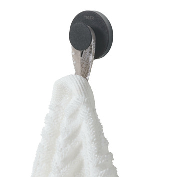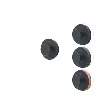 De Tiger Haak Urban Klein Zwart is uitgevoerd in de kleur mat zwart en wordt geleverd met twee decorringen. De decorringen, in de kleur koper en grijs, maken het mogelijk een subtiel kleuraccent toe te voegen. Het is ook mogelijk de haak zonder de decorring te monteren waardoor het zeer eenvoudig is om het product aan de gewenste stijl aan te passen. De haak is voorzien van een krachtige dubbelzijdige tape waardoor montage op iedere gladde, stevige ondergrond zeer eenvoudig is. De Urban serie bevat tevens een grote haak, maar ook een groot aantal aanvullende accessoires voor de badkamer en toiletruimte. Alle in dezelfde stijl. De artikelen uit de serie zijn ook in de kleur mat wit verkrijgbaar, waarbij natuurlijk ook weer diverse decorringen worden meegeleverd.