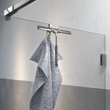 Opbergoplossingen, wij zijn er fan van. Hang deze dubbele haak over jouw douchecabine of glaspaneel voor meer opbergruimte in de badkamer. Dankzij de siliconen coating blijft het glas altijd beschermd. Deze haak is geschikt voor het ophangen van een raamwisser, scheermesje en jouw handdoeken. Zowel aan de natte als aan de droge kant, met deze haak hebben jouw spullen altijd een goed plekje.