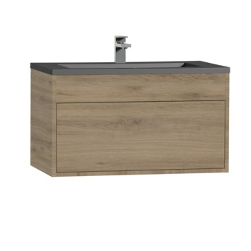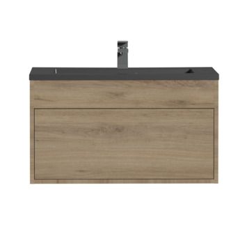 Tiger Helsinki badkamermeubel 80 cm chalet eiken met wastafel polybeton zwart