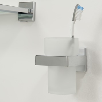 De Tiger Items bekerhouder chroom van de accessoire serie Items is uitgevoerd in chroom gecombineerd met mat glas, en is ook verkrijgbaar in RVS. Dit product kan aan de wand worden geschroefd, maar kan ook met behulp van Tigerfix 1 op een gladde en harde ondergrond geplakt worden. Je hoeft dus niet te boren. (Tigerfix is los verkrijgbaar). Er zijn van deze serie diverse sanitair accessoires verkrijgbaar. Dit product maakt deel uit van het Items totaalconcept, dat verder bestaat uit kranen, badmeubelen, douche accessoires en douchecabines, alles in de Items stijl.