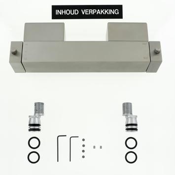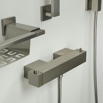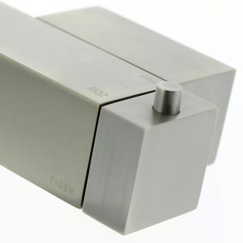 De Tiger Items douchekraan thermostatisch rvs 15 cm is een rechthoekige thermostatische douche-mengkraan uit de accessoiresserie Items van Tiger is uitgevoerd in roestvast staal en is voorzien van een duurzame PVD-coating. De douche-mengkraan heeft een 15 centimeter aansluiting. De mengkraan heeft twee vierkante afdekrozetten die zorgen voor de afwerking aan de muur. De douchekraan heeft een eenvoudige montage zonder ontsierende wartelmoeren en stopt met stromen bij het wegvallen van de toevoer van koud water.