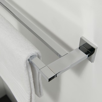 Het Tiger Items handdoekrek dubbel chroom van de accessoire serie Items is uitgevoerd in chroom, en is ook verkrijgbaar in RVS. Dit product kan aan de wand worden geschroefd, maar kan ook met behulp van Tigerfix 1 op een gladde en harde ondergrond geplakt worden. Je hoeft dus niet te boren. (Tigerfix is los verkrijgbaar). Er zijn van deze serie diverse sanitair accessoires verkrijgbaar. Dit product maakt deel uit van het Items totaalconcept, dat verder bestaat uit kranen, badmeubelen, douche accessoires en douchecabines, alles in de Items stijl.