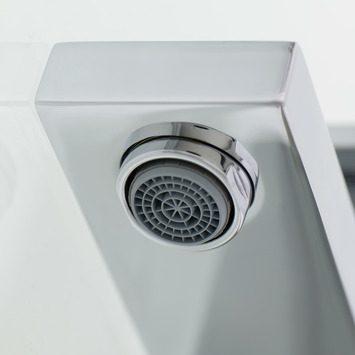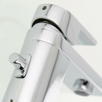 Mooie kraan die helemaal past bij de uitstraling van de badkamer.