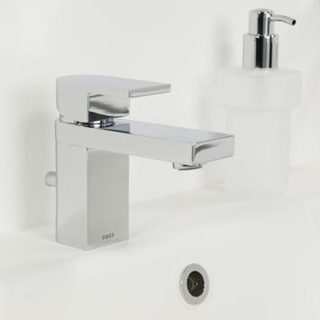 De Tiger Items wastafelkraan éénhendel met lage uitloop en waste chroom is een rechthoekige wastafelkraan met een PVD-coating. Dit zorgt ervoor dat de wastafelkraan jarenlang haar stralende uitstraling behoudt. De wastafelkraan heeft een waste, op de achterzijde van de kraan zit een bedieningssysteem voor het afsluiten en het openen van de afvoer van de wasbak. De wastafelkraan beschikt over een top fixing montagesysteem. De Items kranen maken deel uit van een compleet badkamerconcept dat wastafels, badkamermeubilair, douchecabines, spiegels, kranen en vele accessoires omvat.