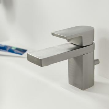 De Tiger Items wastafelkraan éénhendel met lage uitloop en waste rvs is een rechthoekige wastafelkraan met een PVD-coating. Dit zorgt ervoor dat de wastafelkraan jarenlang haar stralende uitstraling behoudt. De wastafelkraan heeft een waste, op de achterzijde van de kraan zit een bedieningssysteem voor het afsluiten en het openen van de afvoer van de wasbak. De wastafelkraan beschikt over een top fixing montagesysteem. De Items kranen maken deel uit van een compleet badkamerconcept dat wastafels, badkamermeubilair, douchecabines, spiegels, kranen en vele accessoires omvat.