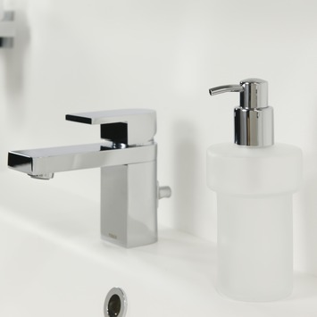De Tiger Items zeepdispenser chroom van de accessoire serie Items is uitgevoerd in chroom gecombineerd met mat glas, en is ook verkrijgbaar in RVS. De dispenser kan vrijstaand of als reserveonderdeel van de hangende zeepdispenser worden gebruikt. Er zijn van deze serie diverse sanitair accessoires verkrijgbaar. Dit product maakt deel uit van het Items totaalconcept, dat verder bestaat uit kranen, badmeubelen, douche accessoires en douchecabines, alles in de Items stijl.