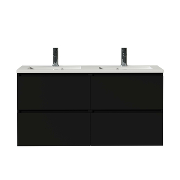 Tiger Karlo badkamermeubel 120 cm (2x 60cm) Mat Zwart met witte wastafel