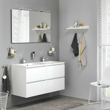 - Keuze uit polybeton wastafel met overloop of wasblad met keramieken waskom