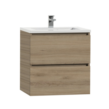 Tiger Karlo badkamermeubel 60 cm chalet eiken met wastafel hoogglans wit