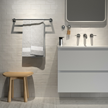 - Keuze uit polybeton wastafel met overloop of wasblad met keramieken waskom