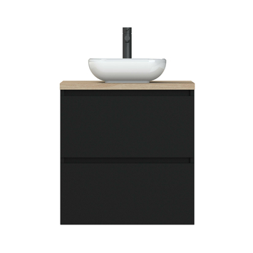 Tiger Karlo badkamermeubel 60cm Mat Zwart met eiken wasblad en keramische waskom