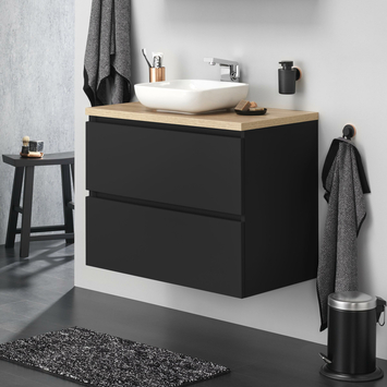 Tiger Karlo badkamermeubel 60cm Mat Zwart met eiken wasblad en keramische waskom929.00