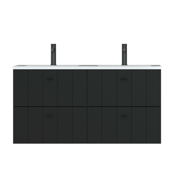 Tiger Maryport Badkamermeubelset 120 cm Mat zwart met wit glanzende polybeton wastafel en matzwarte grepen