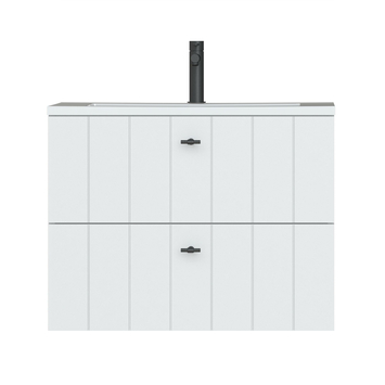 Landelijk design in een modern jasje. De Tiger Maryport wastafelonderkast van 80 cm in mat wit zorgt voor een luxe, sfeervolle look en houdt badkamer en geest opgeruimd. Deze volledig voorgemonteerde wastafelonderkast heeft 2 ruime lades met softclose geleiders om al je verzorgingsproducten overzichtelijk in op te bergen. De half voorgeboorde gaten voor de matzwarte grepen zorgen voor een eenvoudige montage. De look wordt compleet dankzij de wit glanzende polybeton wastafel. Deze wastafel is hygiënisch en gemakkelijk in onderhoud.