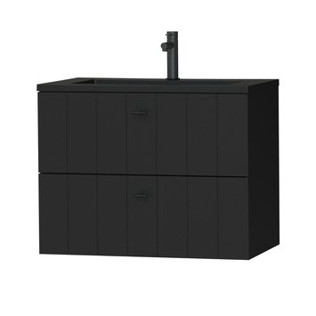 Tiger Maryport Badkamermeubelset 80 cm Mat zwart met matzwarte polybeton wastafel en matzwarte grepen