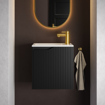 Voor een krachtige en moderne look kies je de Tiger Nook mini onderkast in matzwart. Deze compacte kast is perfect voor kleine ruimtes en toiletruimtes waar stijl en functionaliteit samenkomen. Het geribbelde front geeft het meubel een trendy en luxe uitstraling, terwijl de matzwarte kleur prachtig combineert met industriële elementen zoals betonlook en zwarte accessoires.