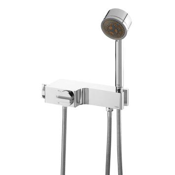 - Temperatuurbeveiligingsknop: Begrenst de temperatuur. Wil je warmer douchen, dan druk je de knop in en draai je de kraan verder open.