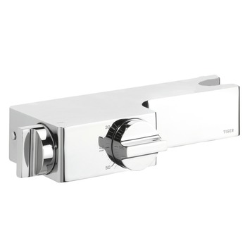 De Tiger Ontario thermostatische douchekraan is een stijlvolle kwaliteitskraan met een eigenwijs tintje. Deze massieve kraan is naast stijlvol ook functioneel en duurzaam. Met de thermostaatknop stel je eenvoudig de temperatuur van het water in. De kraan is tevens voorzien van keramische schijven die zorgen voor een soepele en nauwkeurige bediening van de knoppen. In tegenstelling tot kranen met kraanleertjes, vergen keramische schijven nauwelijks onderhoud. Dankzij de gebruikte anti-kalk cartridge ontstaat er minder kalkvorming in de kraan.